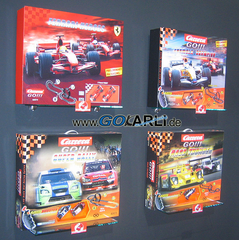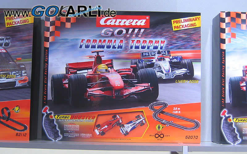 Bilder der Spielwarenmesse Nürnberg 2008Die Carrera Digital 143 ist geboren!Berni und ich sind diese neue Bahn gefahren und finden Sie super, ein genauer Bericht über die Spielwarenmesse Nürnberg 2008 folgt noch. Es wir dieses Jahr auch noch eine neue Eis Kurve 1/90 geben, leider war die auf der Messe noch nicht zu sehen. Wir werden heute noch das Bild aus dem neuen Katalog 2008 auf unserer Seite zeigen. Einen Bericht über die Messe gibt es hier>> |
