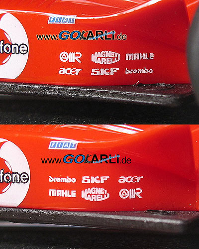 Keine Bridgestone Reifen und Frontspoiler aus helleren und matten Kunststoff.