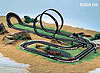 Die lange Gerade bringt Deinen Boliden auf Spitzengeschwindigkeit, aber ja nicht beim Anbremsen der Spitzkehre vertun, sonst landet das Fahrzeug im Aus! Sofort wieder aufs Gas, um den Looping zu packen und dann vorsichtig durchs Kurvengeschlängel mit der eingebauten Engstelle!