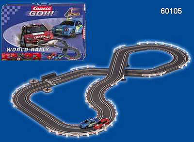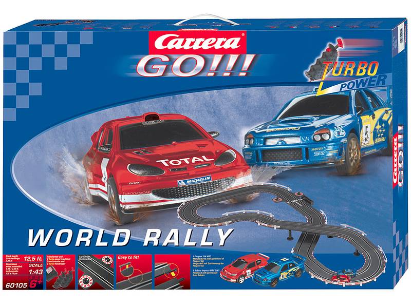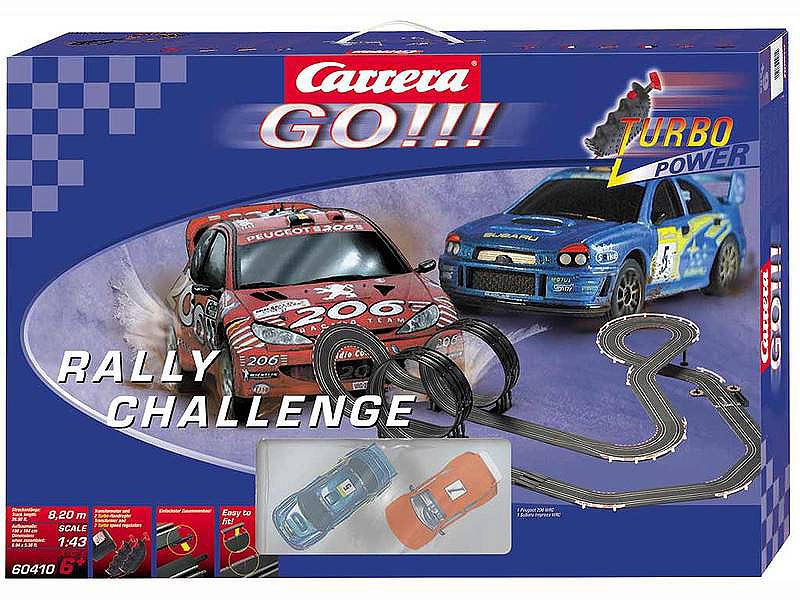 Rallyesport vom Feinsten! Mit den Modellen der populären World Rallye-Klasse, dem Peugeot 206 WRC und dem Subaru Impreza WRC fegst Du über einen anspruchsvollen Kurs und musst sämtliche Tricks und Kniffe anwenden, um die Bestzeit zu setzen! Perfekte Streckenkenntnis ist gefragt, um wie die Großen durch die Kurven zu preschen, den Looping zu bezwingen und hinterher beim Jump die Kontrolle über das Fahrzeug zu behalten! Engstelle und Fly Over-Sektion sorgen für das besondere Montecarlo- Gefühl. Die 8,20 m lange Strecke in dieser Grundpackung bietet viele Streckenverlaufs-Möglichkeiten.