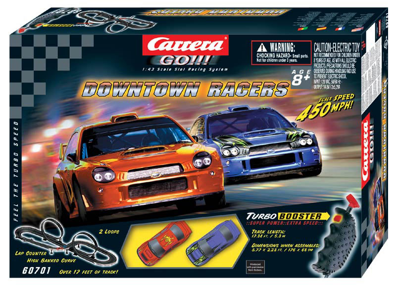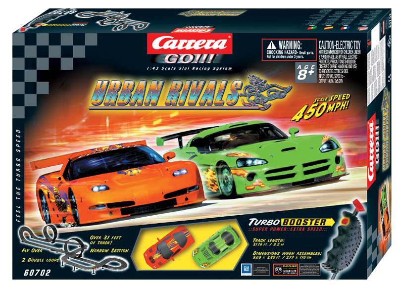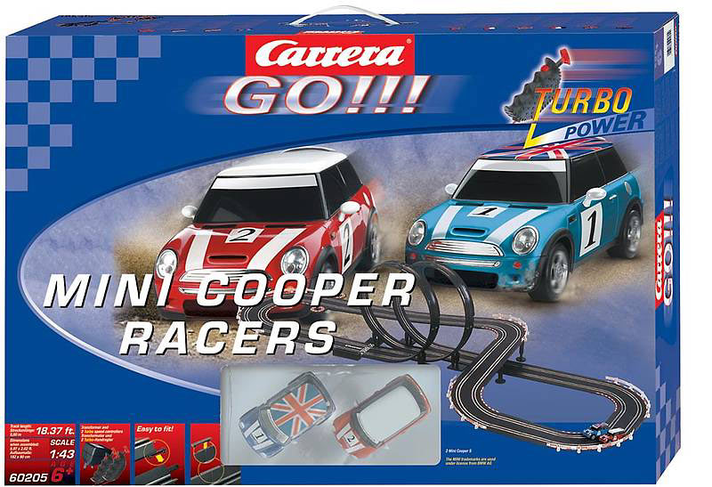 The Mini Cooper celebrates its resurrection, being prepared to mess with the big boys as the powerful midget.The detailed Mini Cooper S-models carry you away in the world of roaring engines, squealing brakes and cheering fans! The 12.46 ft. long basic set comprises two tampo-printed Mini Cooper S-models.