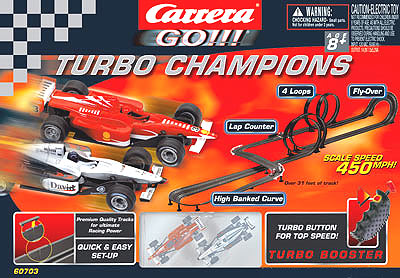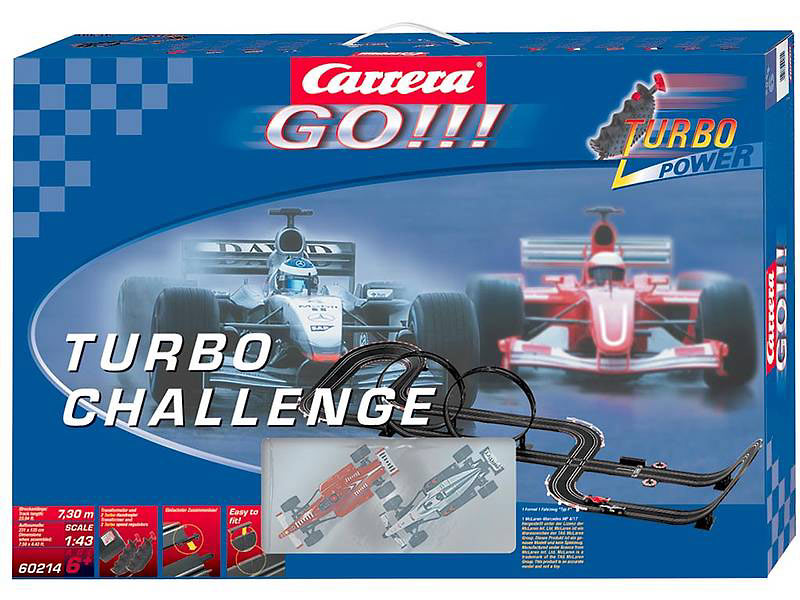 CARRERA »GO«. Autorennbahn komplett mit Engstelle, Fly over und 2 Loopings. 2 Turbo-Boost-Handregler beschleunigen die Fahrzeuge von 0 auf 100% aus dem Stand.