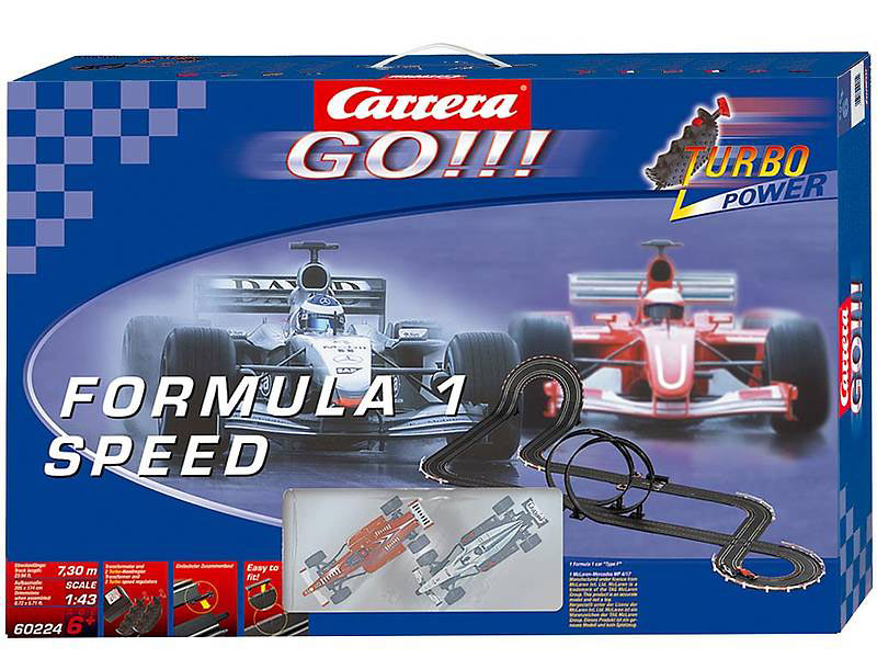 Diese Carrera GO!!! Autorennbahn garantiert pures Adrenalin auf 8,7 m Streckenlänge. Mit 2 Loopings, Fly-Over-Steilkurve, Engstelle und Rundenzähler. Inkl. 2 Formel 1-Fahrzeugen, Handreglern und Trafo. Verschiedene Aufbauvarianten möglich.