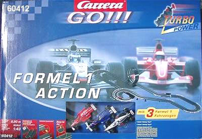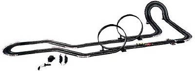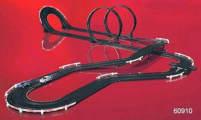 Auf diesem anspruchsvollen Kurs wird das gesamte fahrerische Können abverlangt! Steilwandkurve, Steilkurve, Engstelle, Kreuzung und die beiden Loopings erfordern höchste Konzentration und perfekte Fahrzeugbeherrschung. Die Grundpackung enthält weiterhin die beiden tamponbedruckten Formel 1 Fahrzeuge McLaren-Mercedes MP 4/17 und „TypF“.