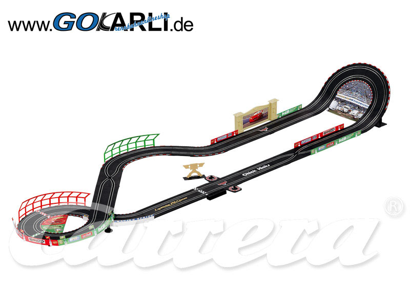 Erlebe und spiele seine Abenteuer jetzt auf der Carrerabahn nach. Mit dabei ist noch der "ewige Zweite" Chick Hicks und 5,40 m Strecke mit vielen, aus dem Film bekannten dekorativen Elementen. Die beiden Fahrzeuge im Maßstab 1:43 sind detailliert nachgebildet und hochwertig bedruckt.