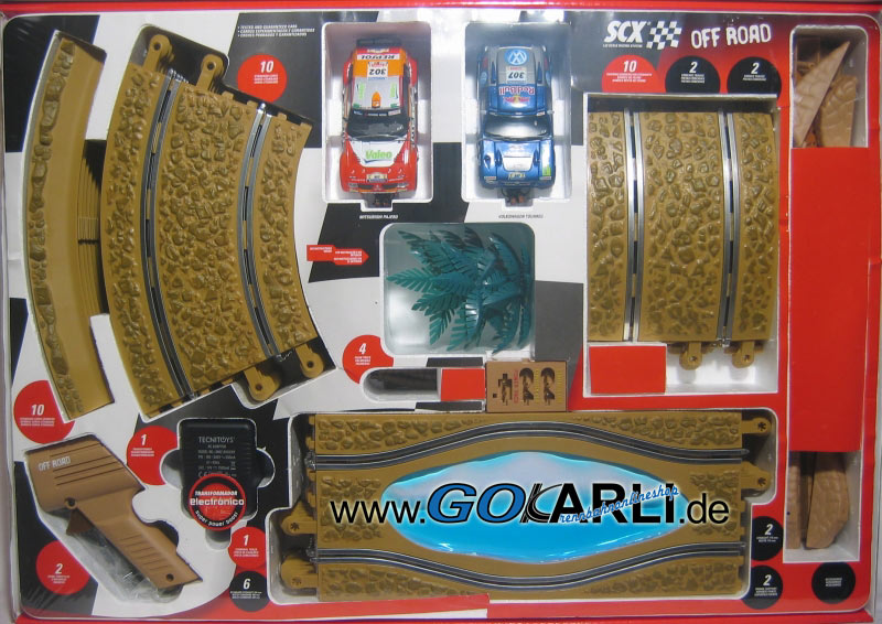 Die neue Grundpackung Off Road gibt ein ganz neues Fahrgefühl. Wie auf einer richtigen Rally Piste muss hier so manches Hindernis überwunden werden. Die Fahrzeuge sind mit einem extralangen Leitkiel versehen,der auch die größte Hürde schafft und das Fahrzeug nie ohne Strom lässt. Ein kleines Video hier>> Neu auf unserer Seite!