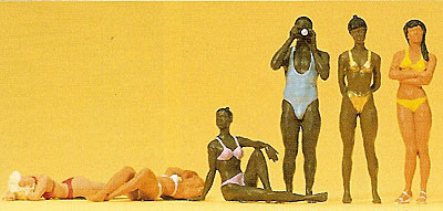 Erhältlich sind zum Beispiel ein Fernsehteam mit Kamera- und Tonmann, eine Mechanikergruppe, drei Rennfahrer, eine Gruppe Badenixen, etliche stehende Figuren die gut in die Boxengasse, an den Streckenrand oder in den VIP-Berreich passen.